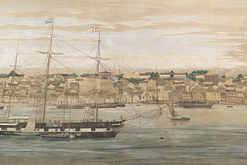 In 1848, two Massachusetts men - Caleb Purrington, a sign-maker, and Benjamin Russell, a painter - unveiled their Grand Panorama of a Whaling Voyage ‘Round the World. It is the longest painting on record, measuring 1,275 feet in length and 8 feet in height. Broken into 4 spools (5 originally, but the fifth section was lost over 100 years ago), Purrington and Russell’s work takes viewers from New Bedford, Massachusetts, to the Azores, Cabo Verde, Rio de Janeiro, and various locations in the Pacific.