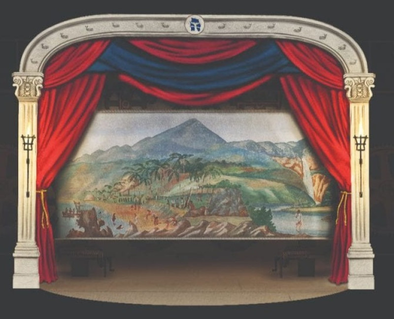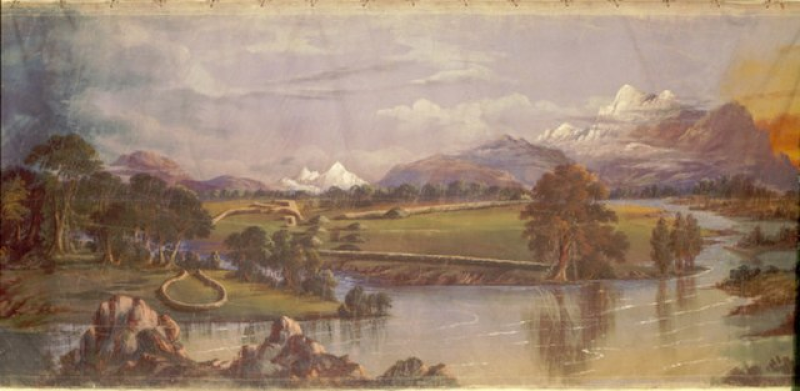 Moving Panorama - a 19th-century-style painting, often accompanied by music and narration that moved on scrolls, intending to encircle and immerse viewers in the scene/setting