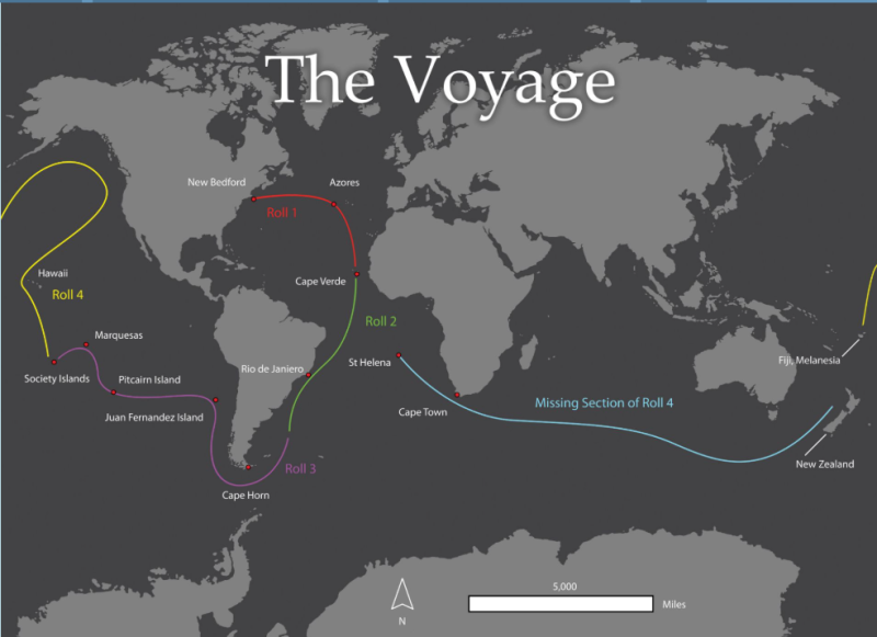 First, examine this digital StoryMap of the whaling voyage as outlined on the digital Grand Panorama. Create a list of questions about the voyage as a whole, giving special consideration to the fact that it was 1848.