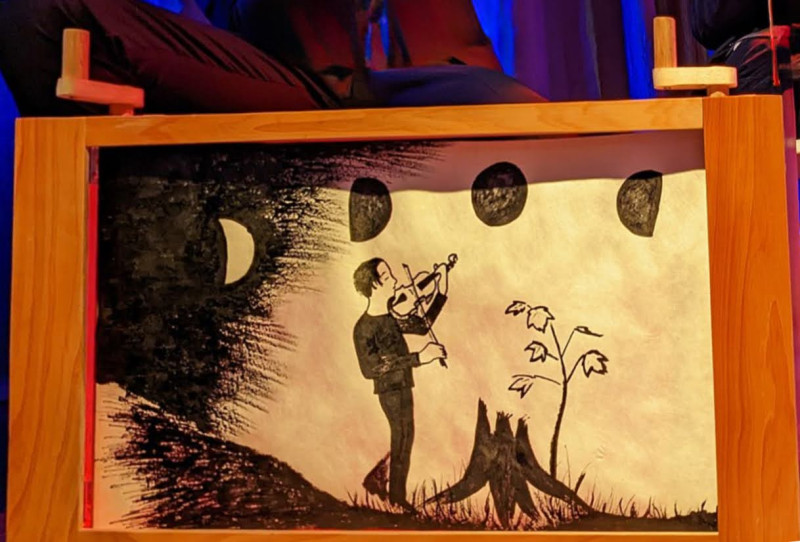 Crankie - a handmade scrolling visual storytelling device that uses scrolled paper on spools or dowels. The scroll moves by being “cranked” as a story is told/sung.