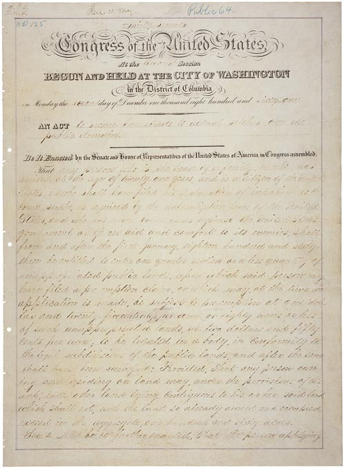 “Homestead Act (1862).” National Archives. Reviewed June 7, 2022. https://www.archives.gov/milestone-documents/homestead-act