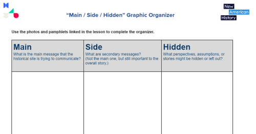 Organize your observations in pairs by using the Main-Side-Hidden thinking routine. Answer these questions, using this graphic organizer.