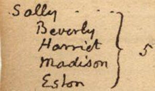Thomas Jefferson Foundation. “Appendix H: Sally Hemings and Her Children.” In Report of the Research Committee on Thomas Jefferson and Sally Hemings. January 2000. https://www.monticello.org/slavery/jefferson-slavery/thomas-jefferson-and-sally-hemings-a-brief-account/research-report-on-jefferson-and-hemings/appendix-h-sally-hemings-and-her-children/ Accessed November 11, 2025.